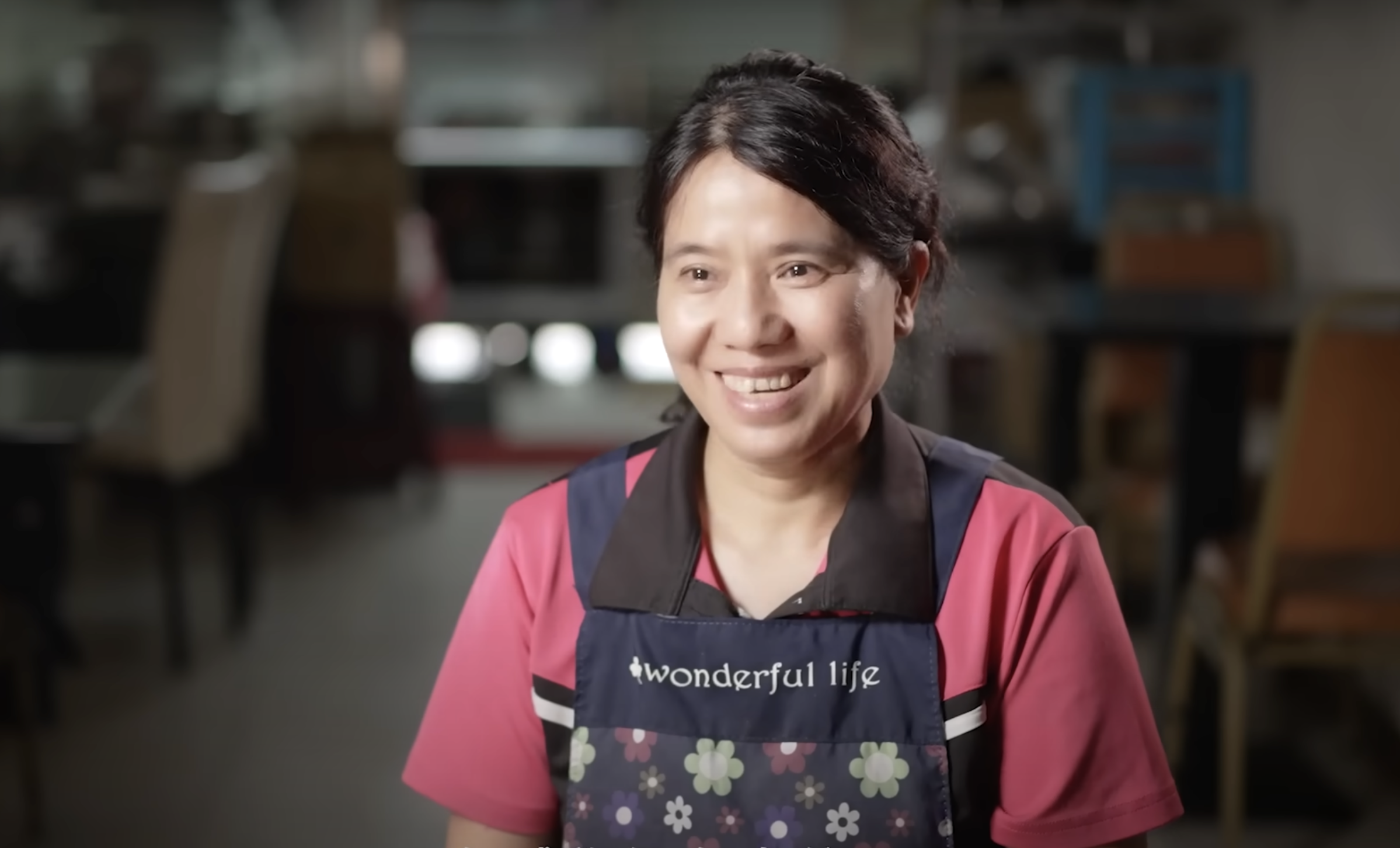 張紅偉雖然每天擀麵糰、包水餃累到不行,但她很感恩貴人的幫助。(圖/截自中國信託慈善基金會 YouTube頻道)
